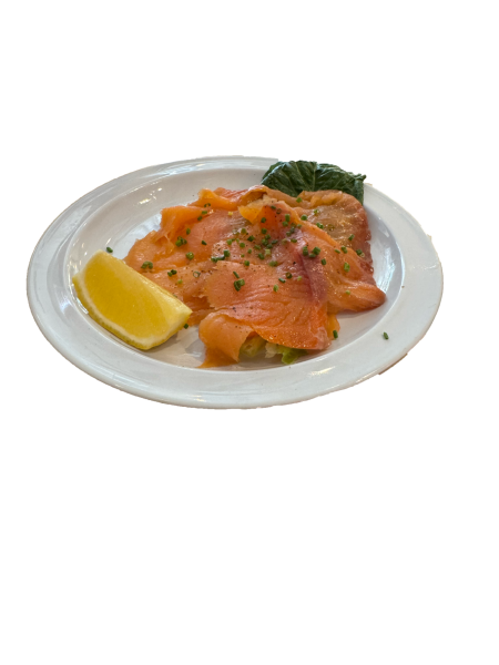 people at my table, but I enjoyed the tasty slices of smoked salmon. Contrary to popular belief, the flavor of lox is less fishy and more savory. The reddish-pink cuts supply a classic salty and refreshing taste.