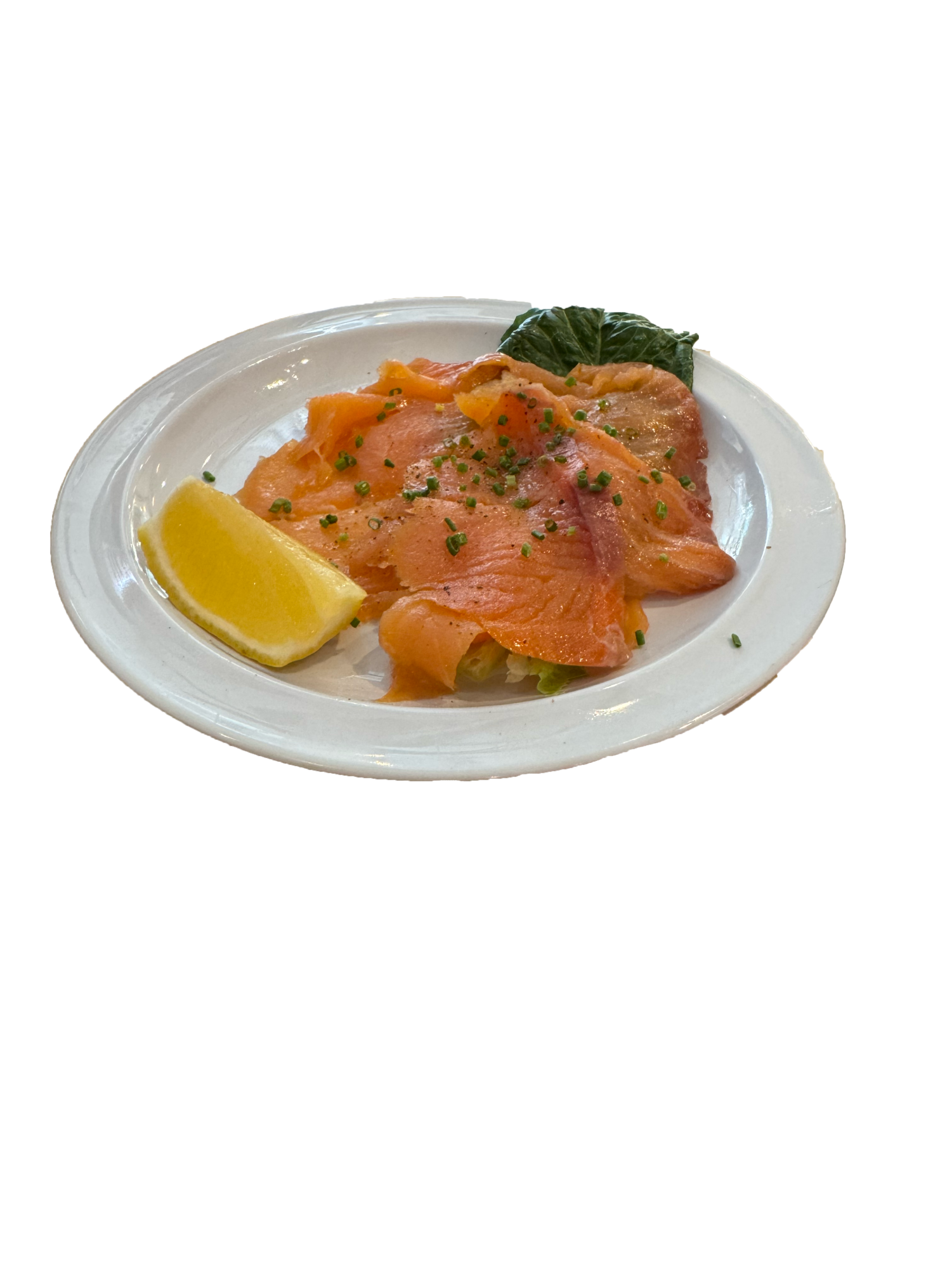 people at my table, but I enjoyed the tasty slices of smoked salmon. Contrary to popular belief, the flavor of lox is less fishy and more savory. The reddish-pink cuts supply a classic salty and refreshing taste.